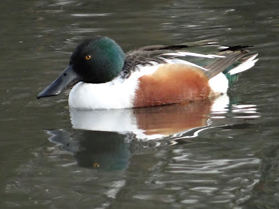 A quick scan of the Entrance Field produced a few Canada Geese, Buzzard & a lone Mute Swan. As we made our way to the Seasonal Hide, a very approachable Redwing clambered through the hedgerow in front of us, not attempting to fly, surely something wrong with it. Two small Geese with pale grey wings & backs & obvious bright red/pink legs flew in low, landing out of sight behind the tall grass, never showing again in the next hour & half. A Kestrel blended in with it's surroundings as it sat in the adjoining cultivated field, where 4 Roe Deer foraged along the far hedgerow.